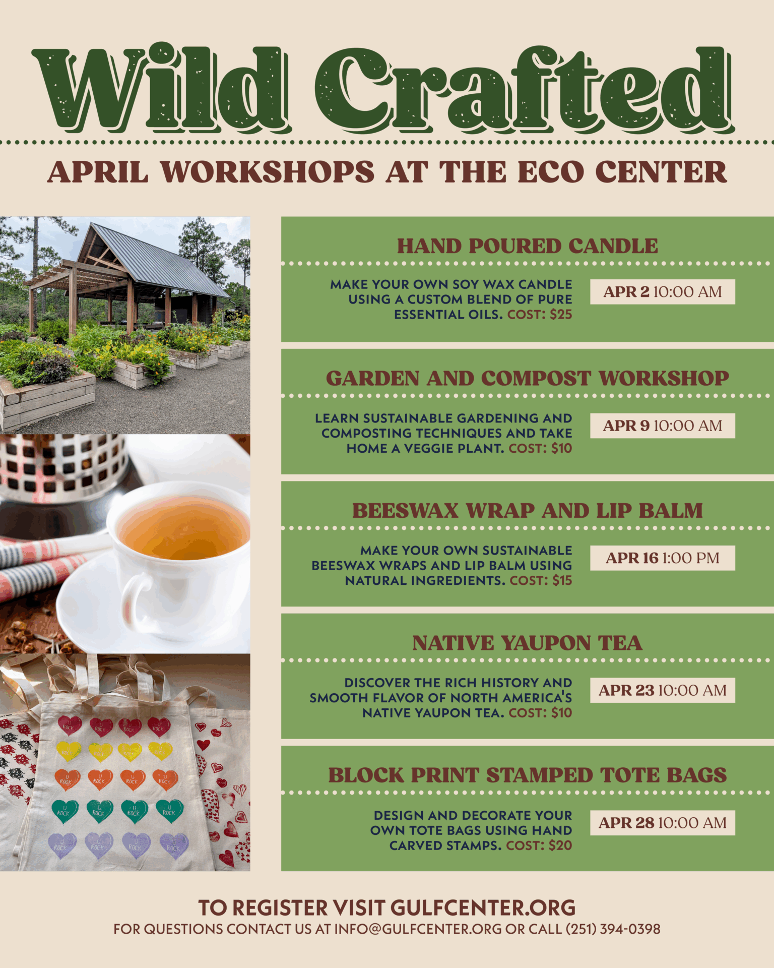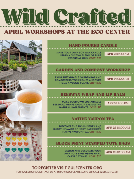 GULF CAMP is open for registration! We are offering five weeks of camp this summer for ages 7-13. You can register for a week-long session or a day pass. Activities include biking kayaking, gardening, fishing, and more! Find more information here.